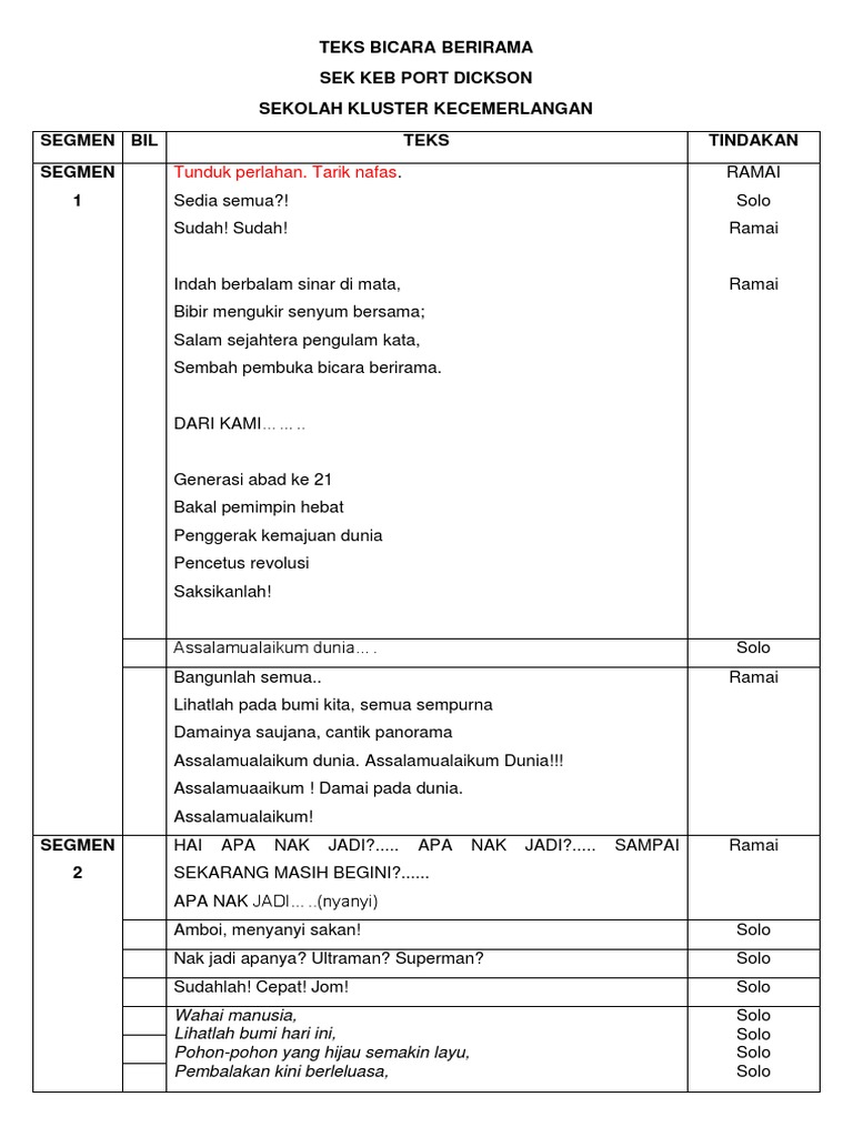 Skrip bicara berirama sekolah rendah. SEGMEN 2 SL SP. 138 bicara berirama sekolah menengah kertas konsep 594 watak.